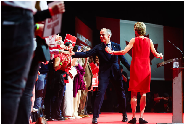 رئيس الوزراء مارك كارني من كندا يحتفل بفوزه في ليلة الانتخابات في أبريل.