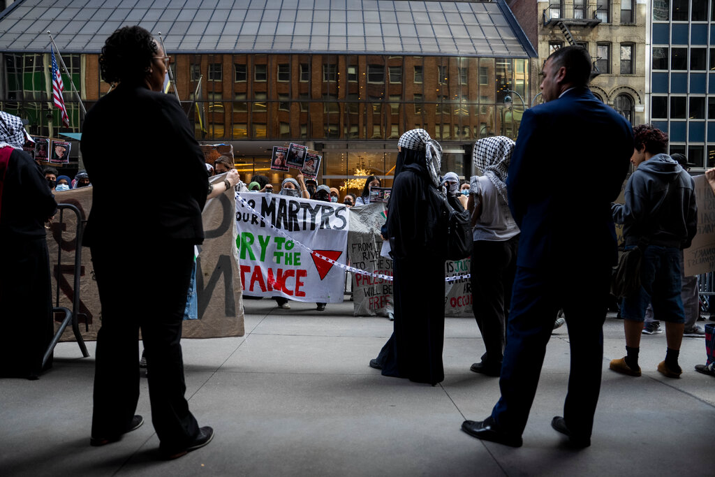 نشطاء مؤيدون لفلسطين في مانهاتن يوم الثلاثاء. تصوير… فينسنت ألبان لصحيفة نيويورك تايمز